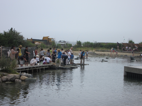 ここは屋外に砂浜が作られていて、裸足で入ったり、カニやヒトデを捕まえたりできます。