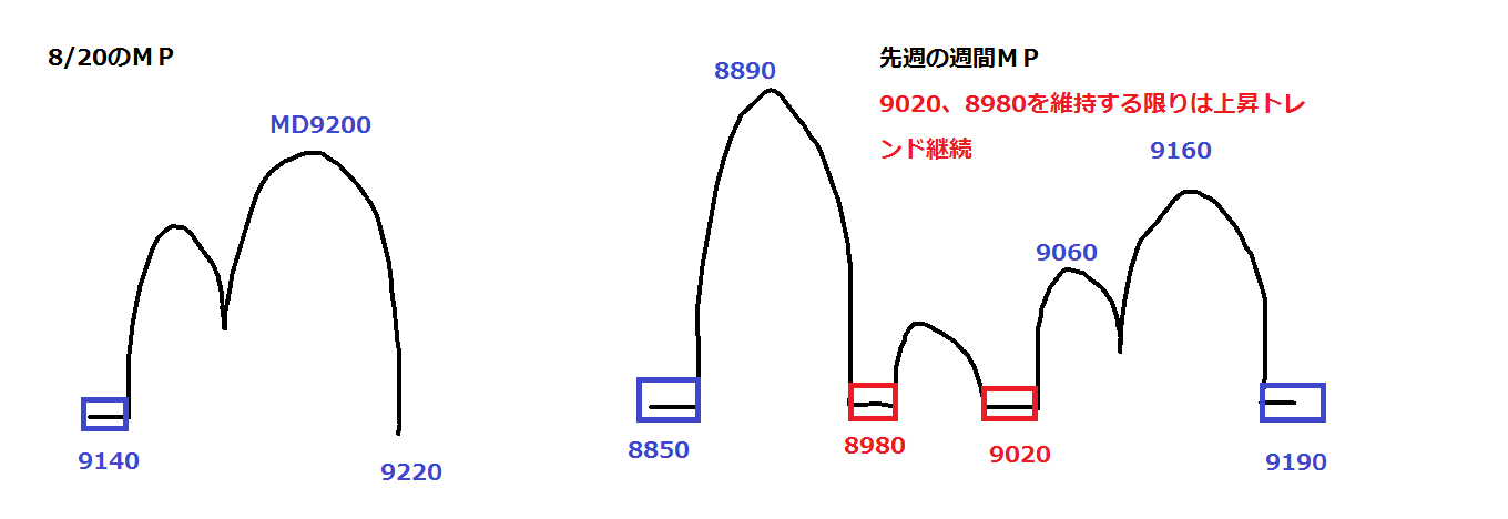 目先のめど9240を抜けるかどうか、判断は明日に持ち越しになりそうです。