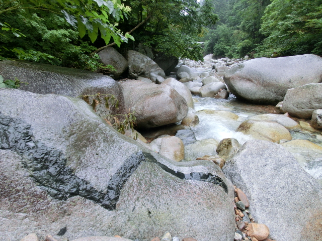 川は上流部に行くほど大きい岩がごろごろ・・・・