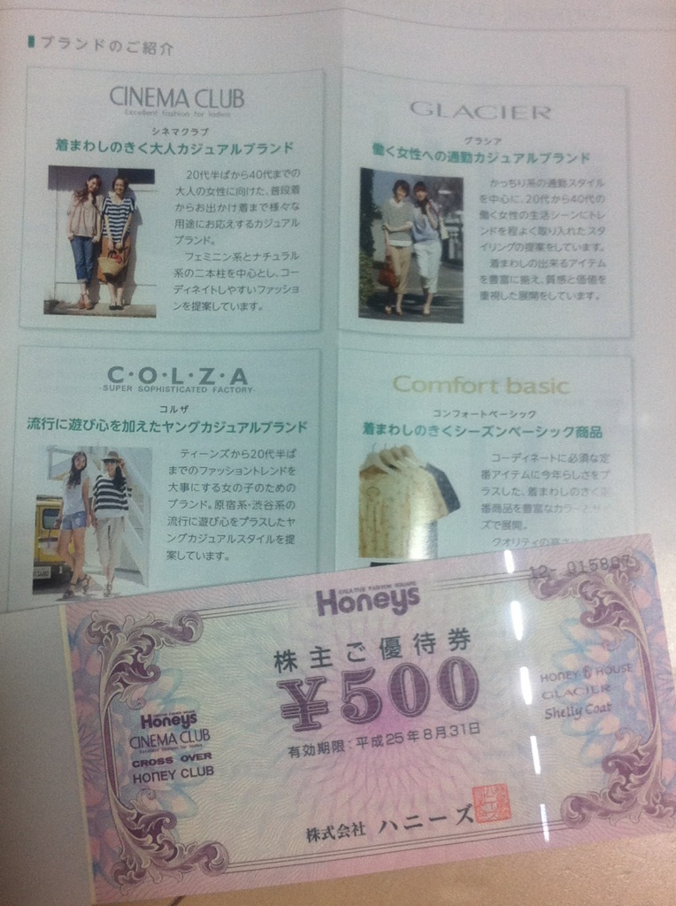 昨日、ハニーズの優待券が到着しました。