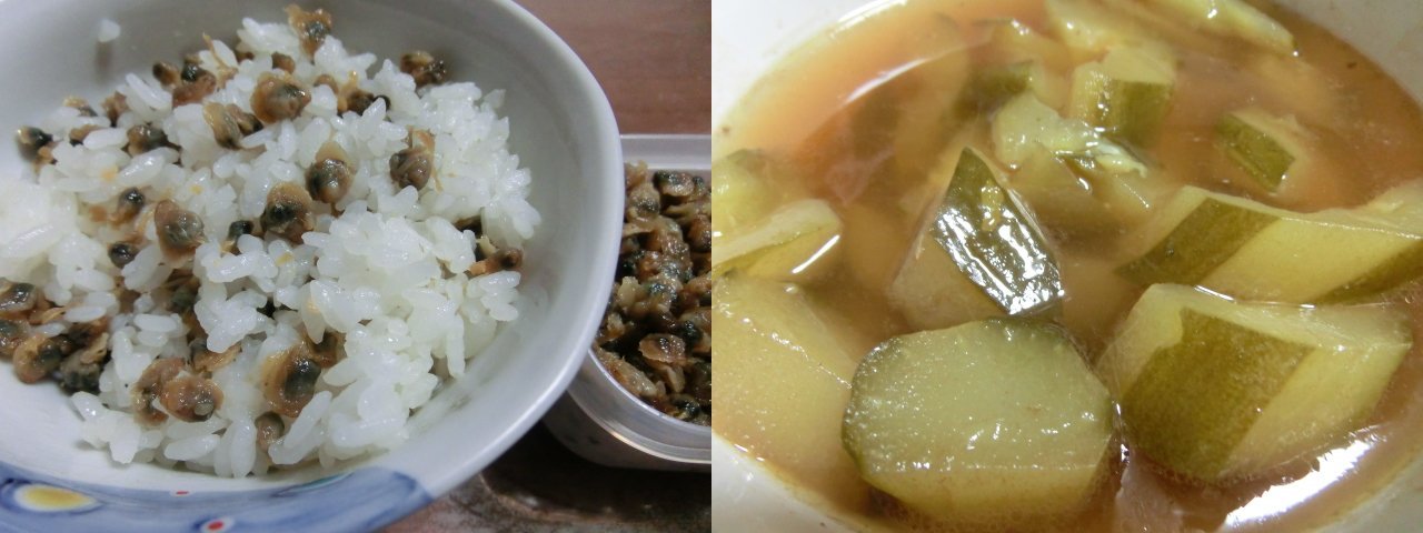 しじみごはんと、キュウリの煮物です^^