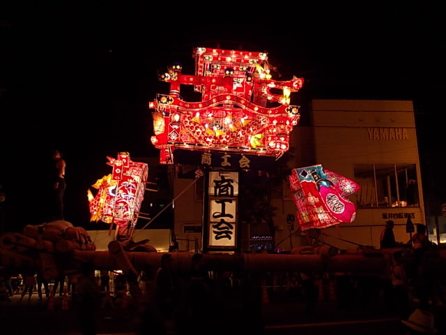 賑やかな夜高の唄に合わせあんどんが練り歩き