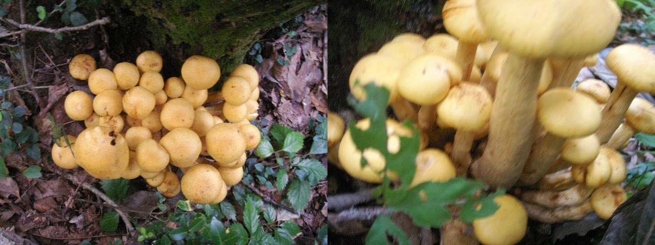 さて、この黄色っぽいキノコは、いわゆる笑い茸です