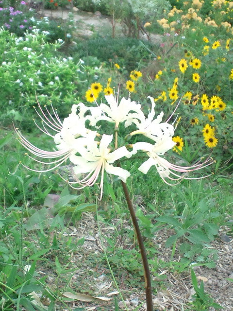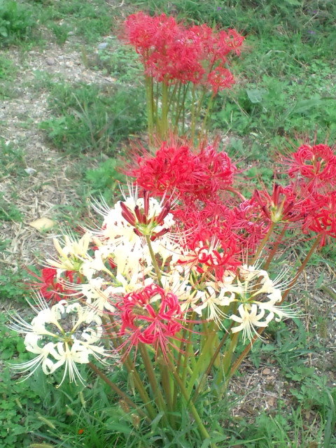 ごんぎつねの里のように一面ヒガンバナで覆われているというような状態ではないですが、紅白のヒガンバナが一緒に咲いているところはきれいでした。