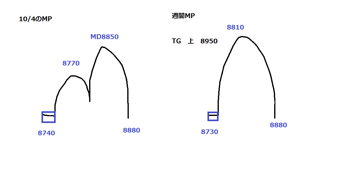 下値めどN値8680もだいたいあてはまってるので、一応チャートどおりに動いているといえます。
