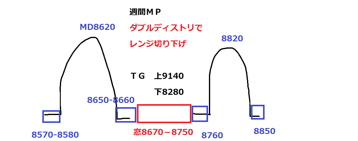 MPもダブルディストリで下落トレンドになっていますので、窓を埋めるまでは下落トレンド継続。