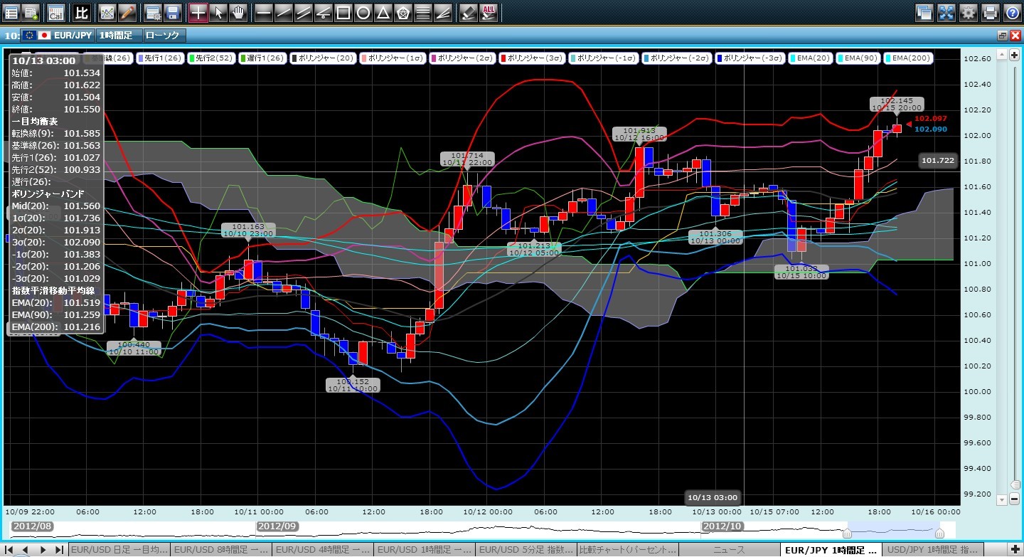 4時間足先行2、日足90日移動平均、1時間足先行1付近の101.20狙い。