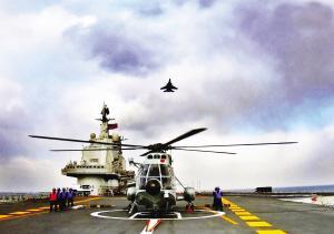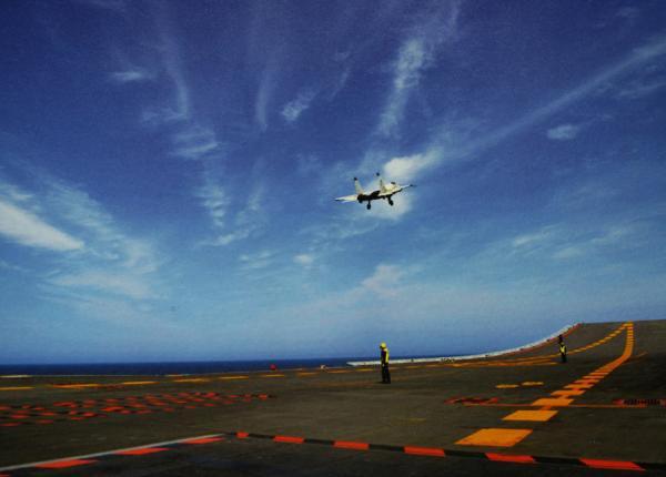 インターネットに投稿された画像では、空母に積まれた「殲15」艦載戦闘機が超低空飛行を行った様子や、艦載ヘリコプター「直8」が空母のデッキに着陸した様子が確認できた。ヘリコプターの着陸を案内した乗組員はチョッキを身にまとっていた。うち、青色のチョッキの背中には「四站」と書かれている。業界関係者によると、この「四站」は、酸素製造、酸素補給、冷房、充電の4つのステーションを指す。”