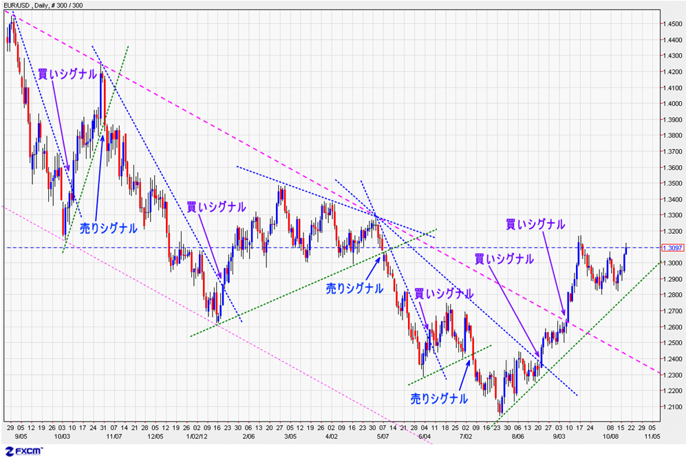 私の場合はこのレンジをユーロドルでいう1.32~1.26あたりを想定しているので