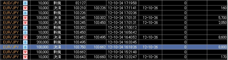 △ 新規 決済 ユーロ/円 2012-10-24-1