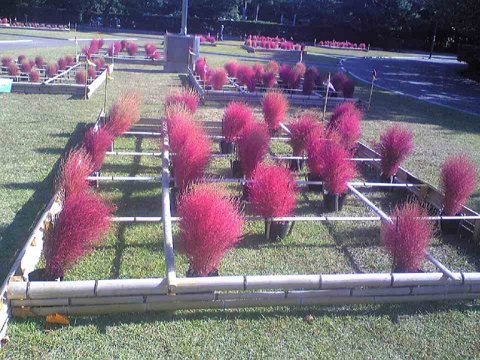 鶴舞公園に朝行ったら、ここは中学生が集団で来ていた。夏とは違う花が咲いていて、びっくり。コキアパークさながらです。