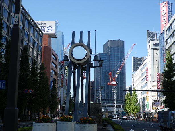 ↑八重洲通と中央通りの交差点にあるオルゴール。これが12時ちょうどに鳴ったところでした。鳴り終わるまで聴いていたけど、なんという曲かわかりませんでした。