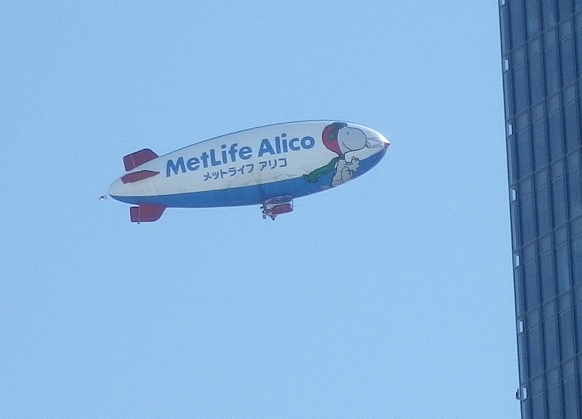 ↑日比谷通りを突っ走って東京駅まで。東京駅の上に浮かぶ飛行船です。あと数分早く着いていれば東京駅と一緒に写せたんですが、惜しかった