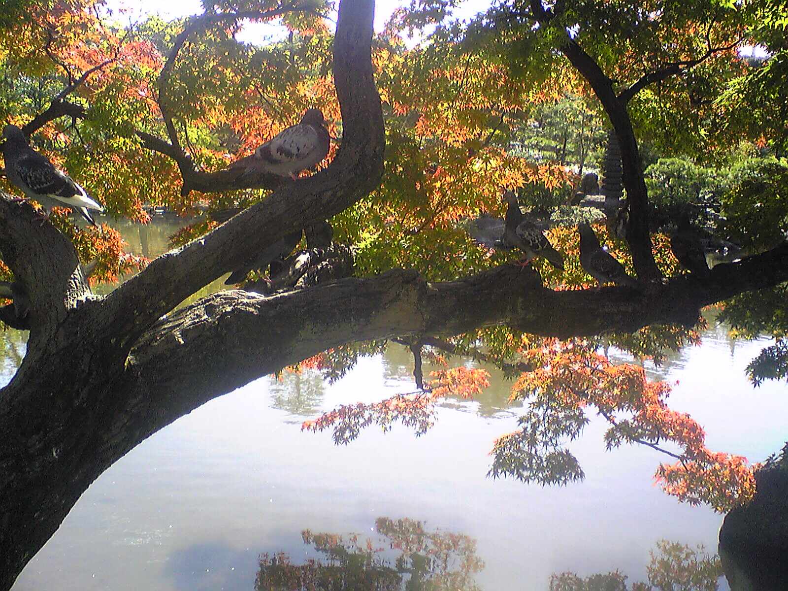 鳩も日向ぼっこしながら紅葉を愛でているんでしょうかね。