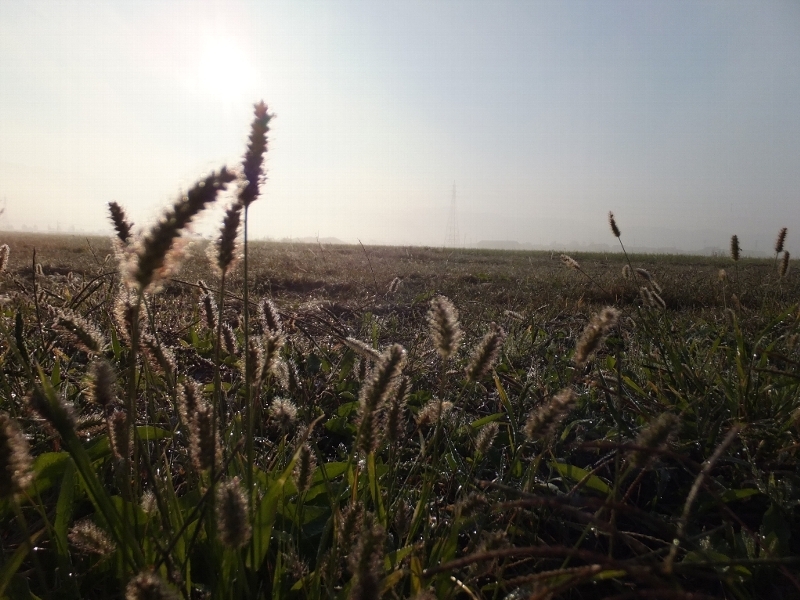 近くの大きい川から朝霧が湧いてゆっくり流れてきます