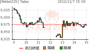 で 日足は下髭付き陰線だがほぼ変わらぬ-2円の8973円。