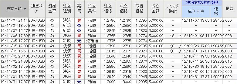 11月に入ってからは、ユーロドルが下落してきたので、結構決済されましたね。