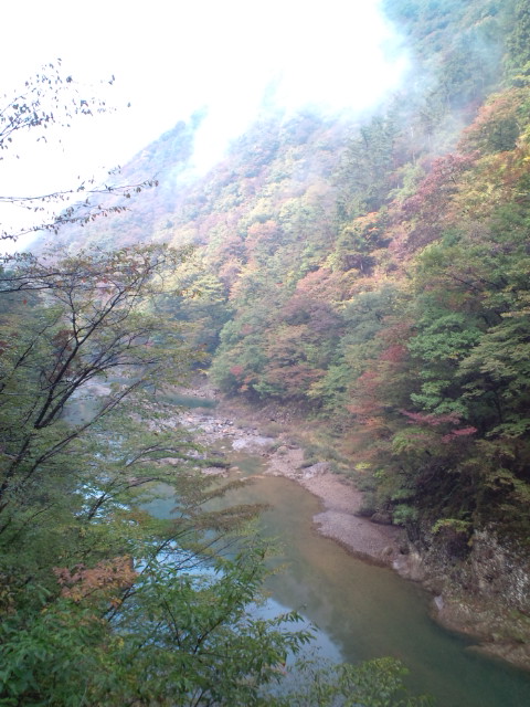 抱返渓谷ではまだ紅葉はほとんどしていませんでした。