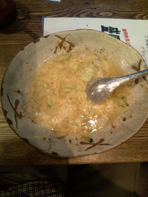 締めは、じゃじゃ麺を少し残しておいて生卵割って混ぜたところでお店の人にスープを入れてもらう「チータンタン」。