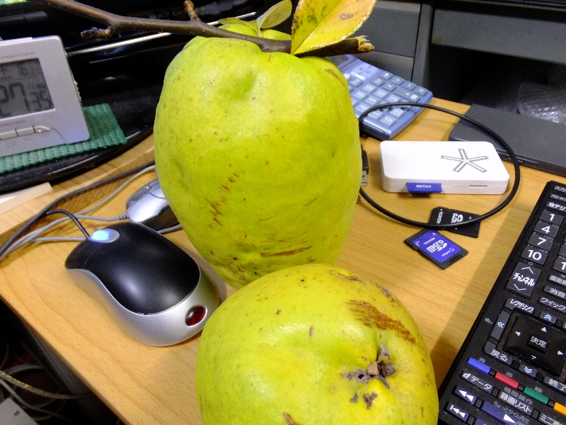 皆さんがおっしゃる通り本当にでかいですね。カリンってもっと小さい物だと思ってました。カリンの香りに誘われてネズミ(マウス)たちも集まって来ましたね。