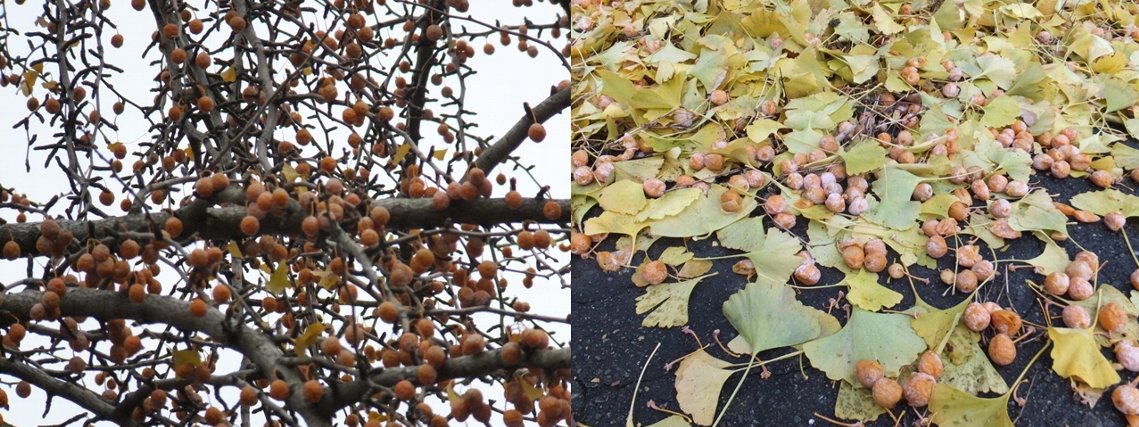 あれ~、イチョウの実がまだ木にくっついているとは!
