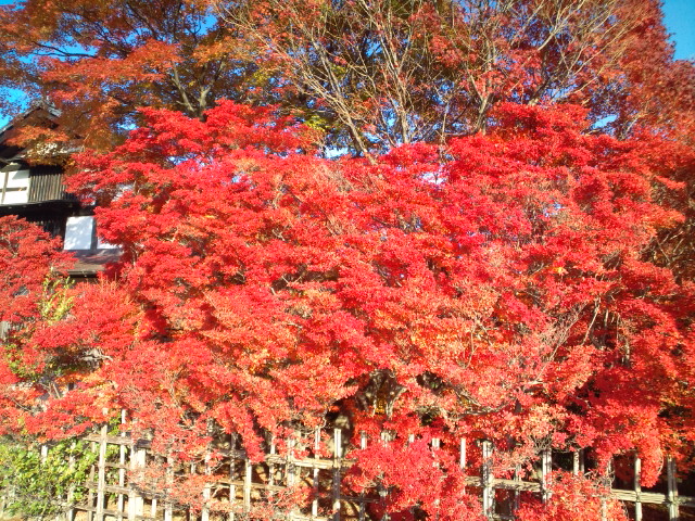 旧家が庭園になっていて、写真のとおりモミジのように真っ赤に紅葉していました。