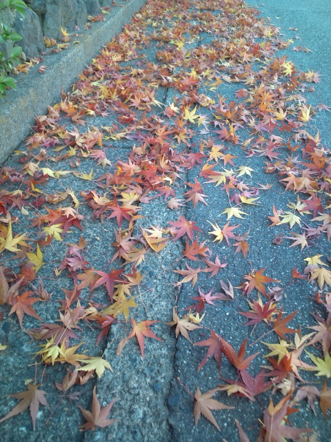 そんな落葉した葉っぱが路上に落ちて、木にくっついている時の紅葉とは違った趣で紅葉を楽しませてくれています。