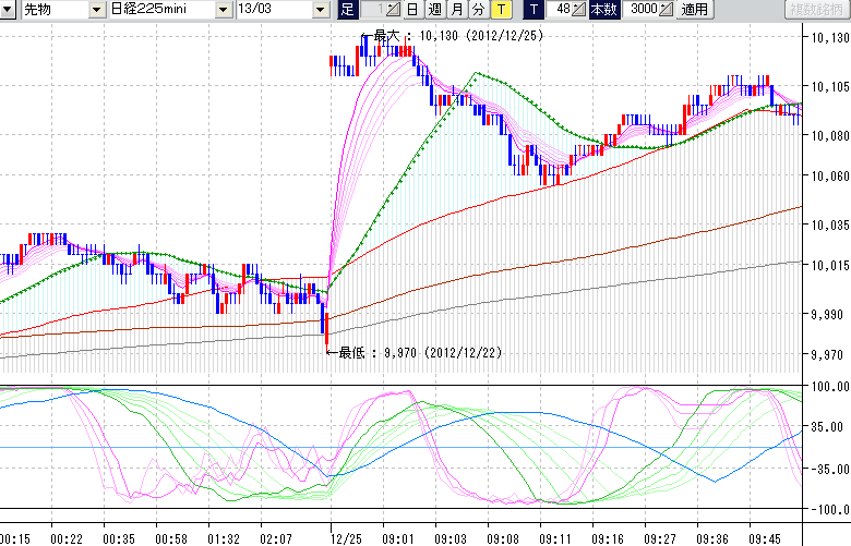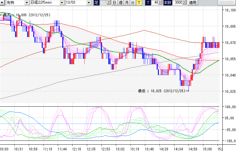 日経225mini先物チャート(下) : 48ティック足