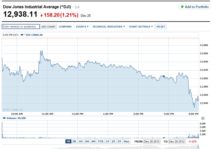 NYダウ、財政の崖問題で下げました。