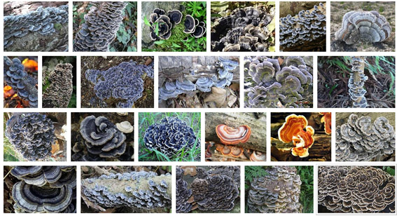 写真左上:カワラタケがびっしり上まで・・・・見事な繁殖活動にただ脱帽・・・・