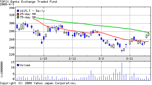 (鉄砲長)「銀行ETFだよ。金価格ETF追撃するぞ!」