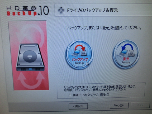 このときの為に買い置きしてあったHDDと交換し、「HD革命CD起動」 というバックアップ復元ソフトを使って復元しました