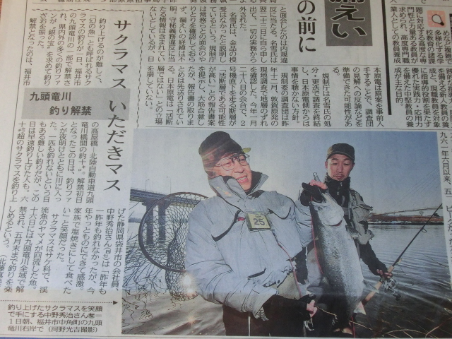 こちら九頭竜川はサクラマスの釣れる川として県外からも集まるちょっと有名な川です