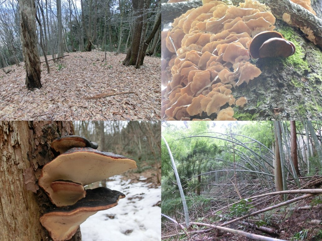 写真左上:キノコがいっぱい出そうな森です