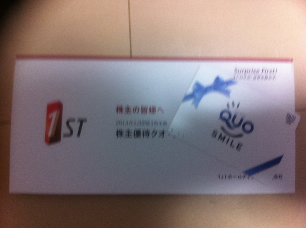 週末に1stホールディングスの優待クオカード500円分が到着しました。