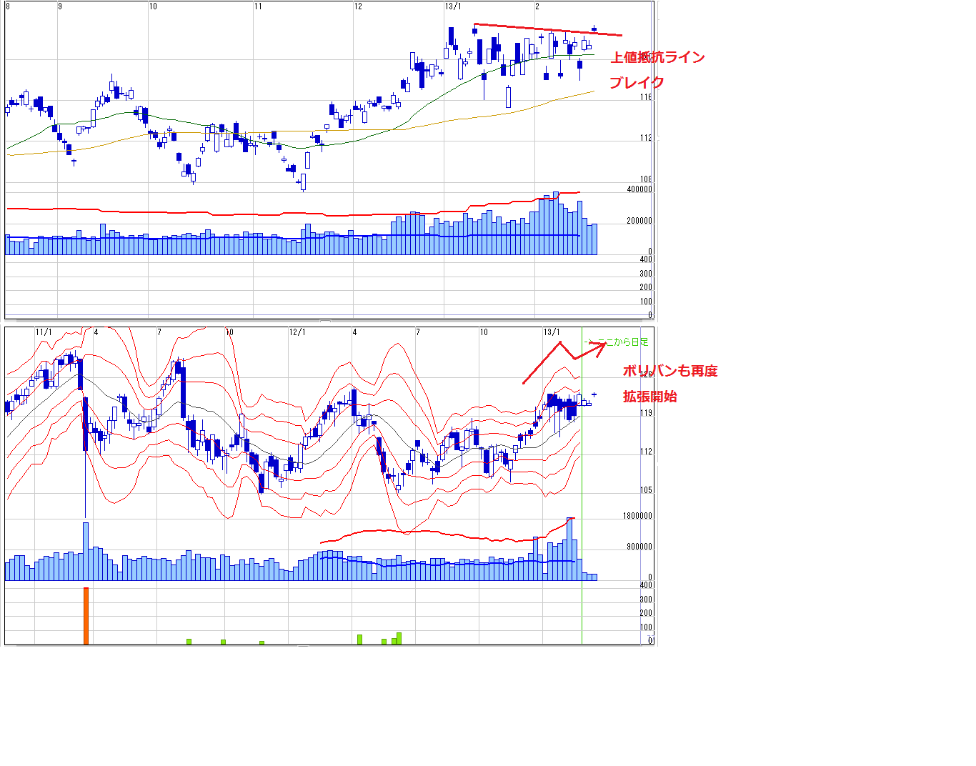 今までさえなかったドル建てチャートがレンジブレイクしてきました。(画像1)