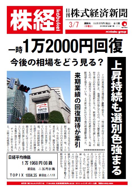 というわけで今日も日刊株式経済新聞の1面を公開しちゃいます!