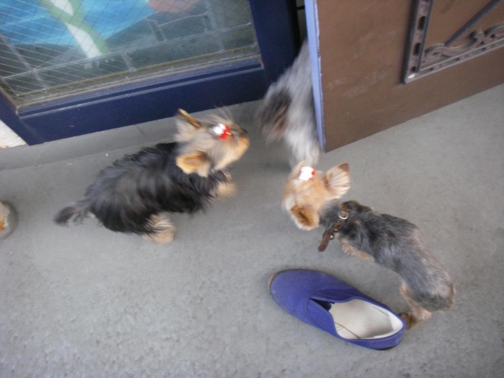 黒いほうのヨークシャーテリアはまだ若いのでよく遊びます