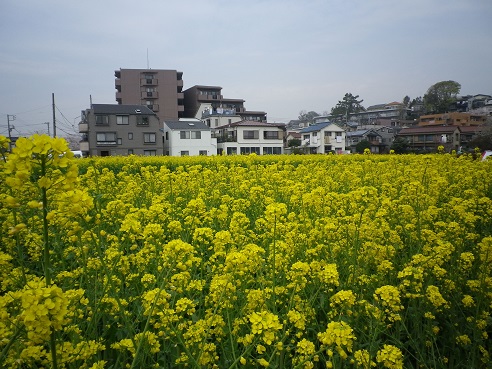 ↓ 新幹線と交差するところにある菜の花畑(ジツは三分の一くらいは駐車場