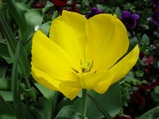 左は不明(カミさんの鑑定ではビオラだとか)。右はチューリップ