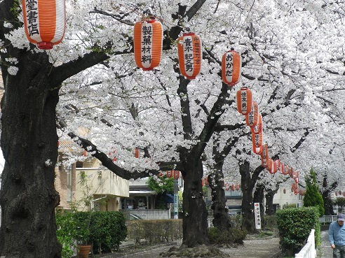 ↓ 都立大学駅をすぎたあたり。呑川桜祭りなんだとか