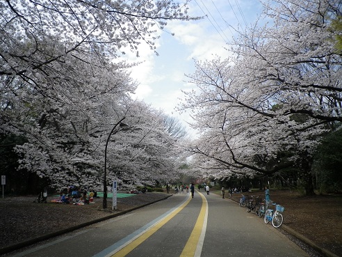 ↓ 駒沢公園の桜。ジョギングやら散歩の人が大勢。