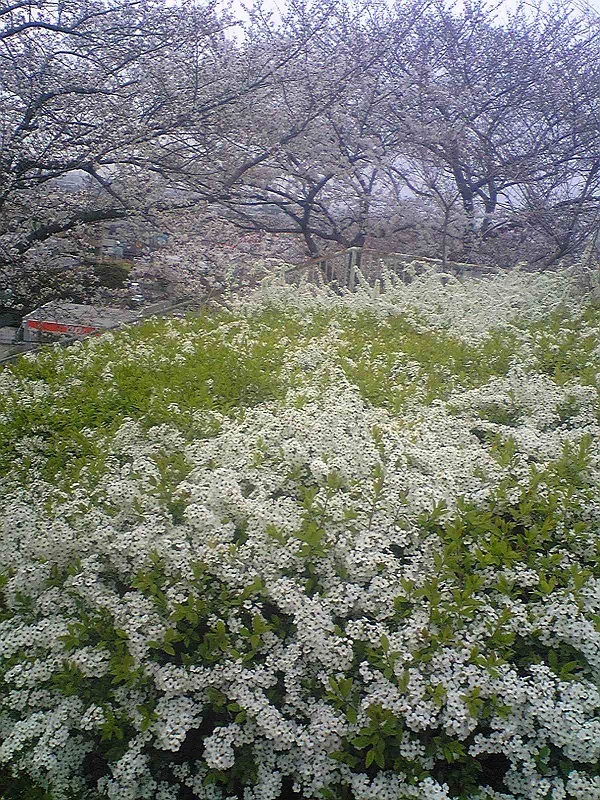 滝の水公園の桃と桜、ここではお茶も咲いていましたが、若芽を摘んでそれをいる人もいます。
