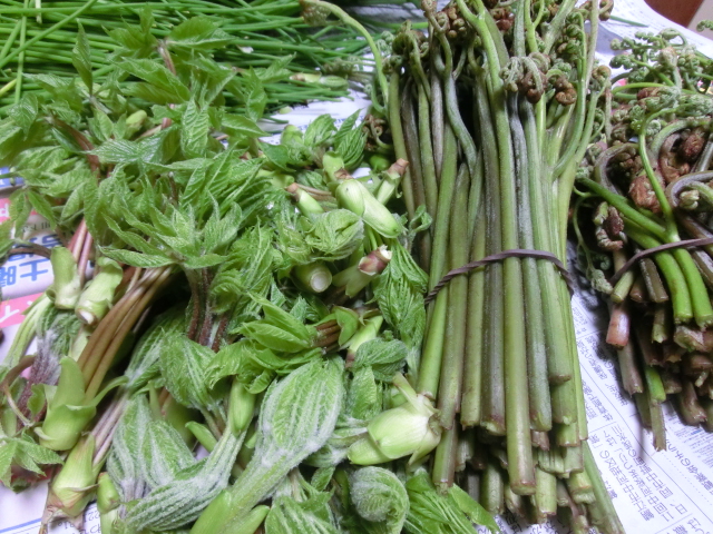 まずは道端でワラビ採り・・・・もう長く育ってます^^