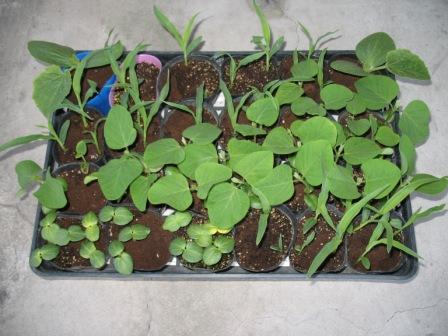 ベランダでタネから育てている野菜の苗