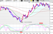 指標ラインの密集点が天底・転換点を示します。指標の見方