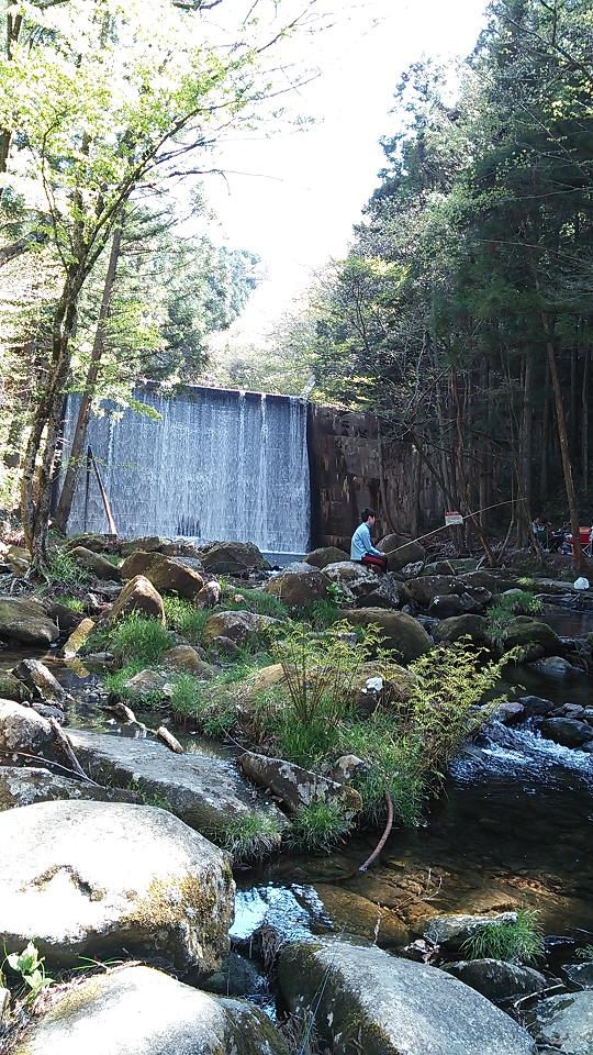 パンフレットには、「神越渓谷には都会であじわえないやさしい自然がある。」と記載されているように、自然の川を石で区切られたところで釣りを楽しむことができます。