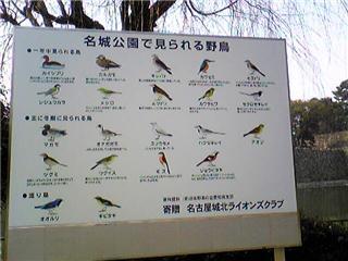 野鳥のボードは名古屋城です。