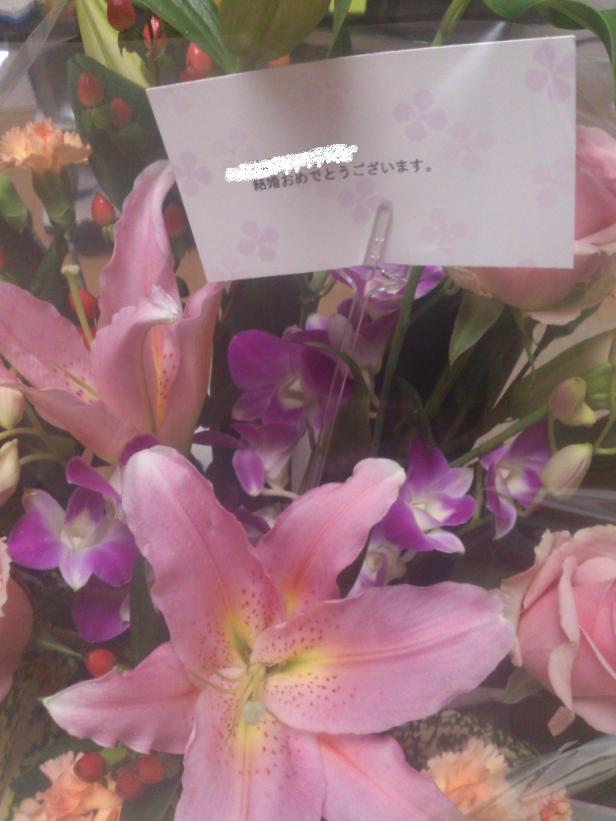 さきほど嫁さんのご両親からお花をいただきました♪(⌒ー⌒)o∠★:゜*'