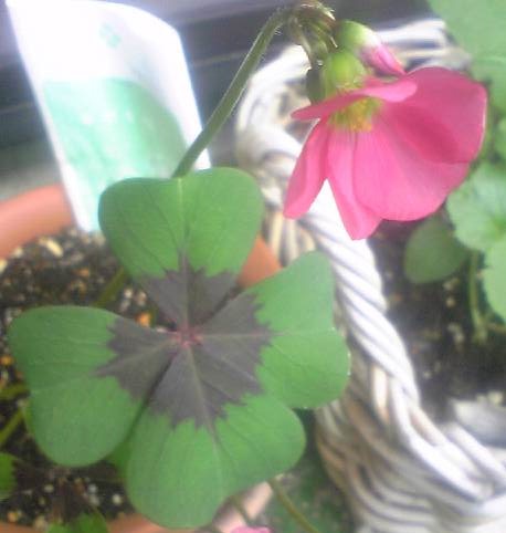 子供が母の日にと送ったものに四葉のクローバの種があった。ようやく咲いた。